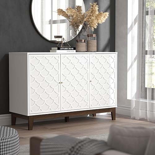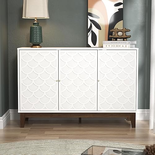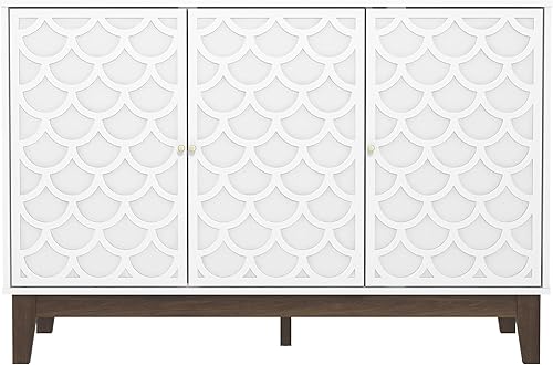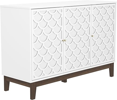 Galano Trafford Buffet à 3 Portes – Armoire à tiroirs de Rangement pour Salon, Chambre à Coucher ou Cuisine (Trafford, Blanc)