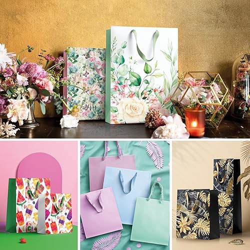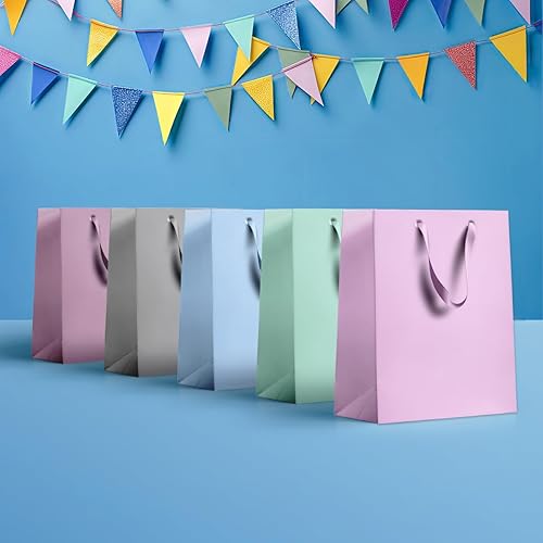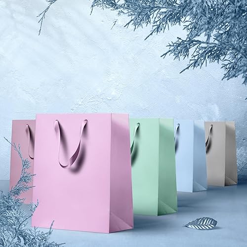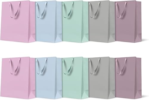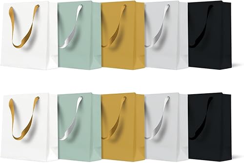PAW - Sacs cadeaux 20 x 25 x 10 cm – Lot de 10 Sacs Cadeaux avec Anse en Tissu | Mélange de 5 couleurs Unies | Sacs élégants pour Anniversaires, Mariages, Fêtes Prénatales, Fêtes et Cadeaux