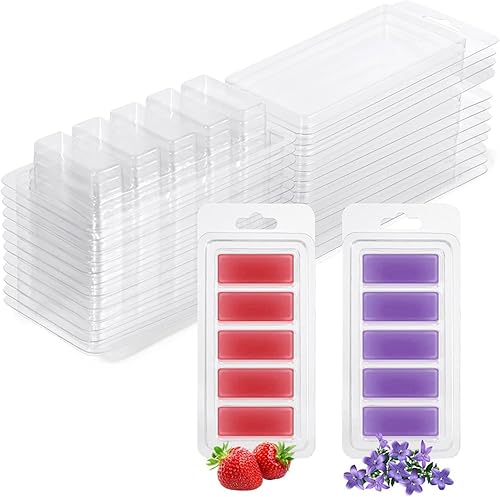 BOLAXHCA Lot de 100 moules à clamshell en plastique transparent avec 5 cavités pour la fabrication de bougies DIY