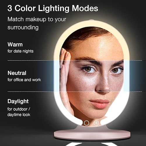 Fancii Miroir Maquillage Lumineux Pliable Rechargeable - Grossissant X10 Magnétique, Lumières LED, 3 Couleurs, Mince, Hauteur Réglable, Voyage (Rose)