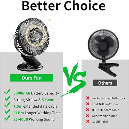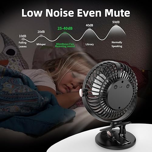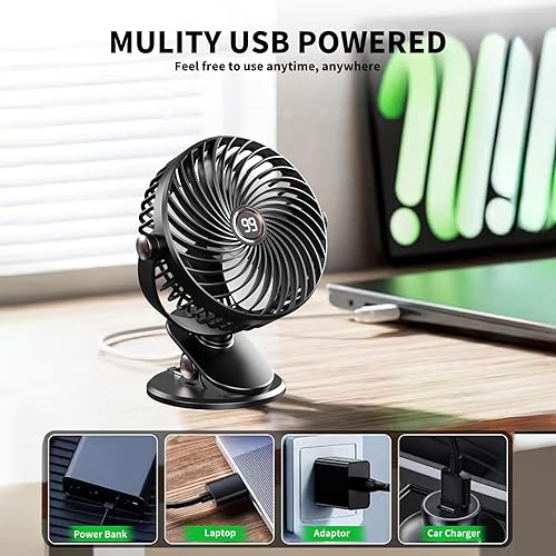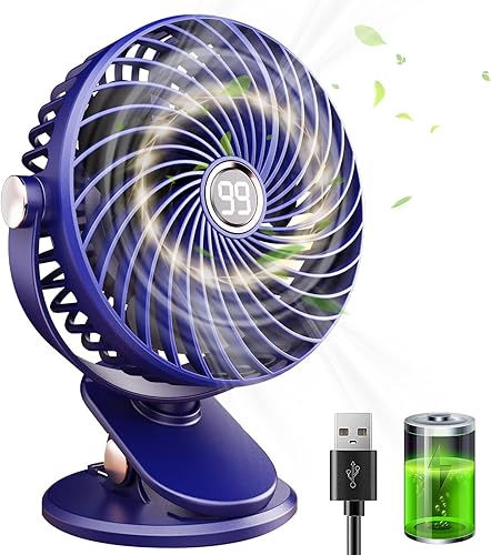 Ventilateur de Bureau, Mini Ventilateur USB Silencieux avec Écran LCD, 6000mAh Petit Ventilateur Portable Rechargeable, 5 Vitesses, Rotation 720°, Ventilateur Pince pour Bureau Maison Camping