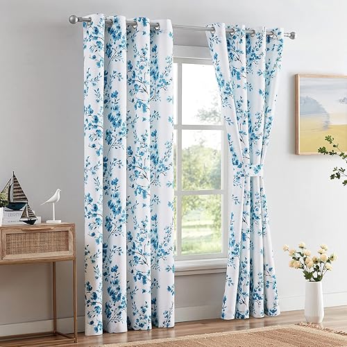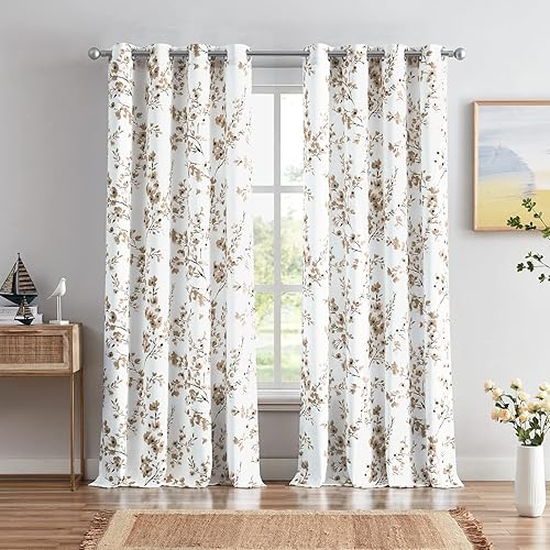 Melodieux Lot de 2 Rideaux à œillets décoratifs à Motif Floral pour Salon, Ferme, 132,1 x 213,4 cm de Long, Blanc