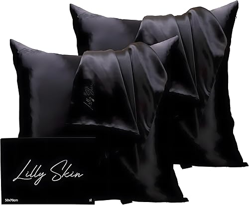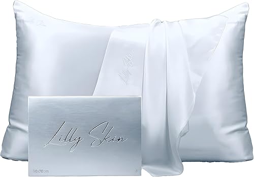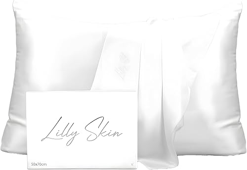 Taie Oreiller Soie Lilly Skin - Housse de Coussin en Soie de Mûrier Naturelle - Doux, Hypoallergénique, Thermorégulant, Anti-acné, Anti-âge - Rectangulaire - 70 x 50 cm - Blanc - x2