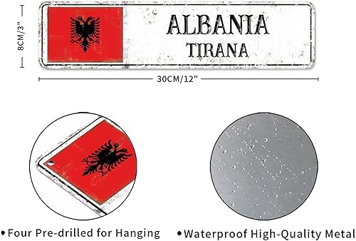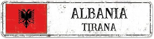 Madcolitote Panneau en métal avec drapeau de l'Albanie personnalisé, panneau en métal de la capitale de l'Albanie, souvenir de la ville de la capitale de l'Albanie, panneau en métal en aluminium,
