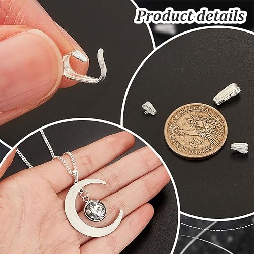 PH PandaHall 12pcs Bélières en argent sterling 925, 3 tailles pendentif Fermoir Clipser les bélières Fixation du pendentif Connecteur de collier Fermoirs à bijoux pour colliers