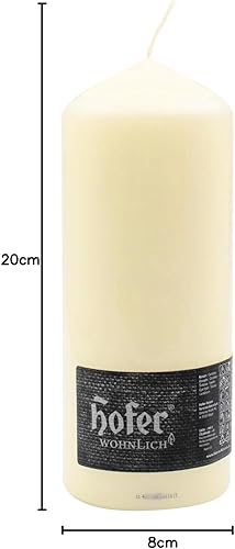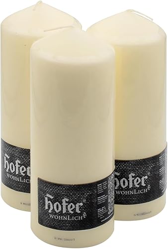 Hofer Lot de 3 bougies cylindriques à colonne - Longue durée de vie: Environ 93 heures, 8 x 20 cm - Couleur ivoire