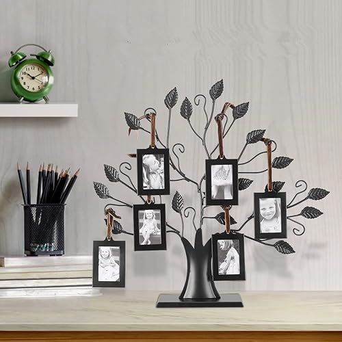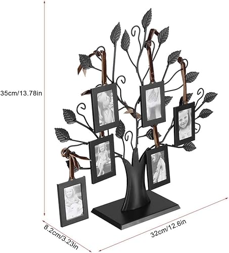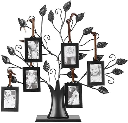 TRIXES Cadre photo arbre généalogique – Cadre photo avec 6 cadres à suspendre amovibles – Sur pied, excellent cadeau d'anniversaire de famille – Noir