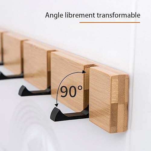 Cozensyson Patère Autocollante Solide en Bois avec 5 Crochets Pliables pour Accrocher Manteaux, Manteaux, Chapeaux, Écharpes, Sacs à Main et Clés
