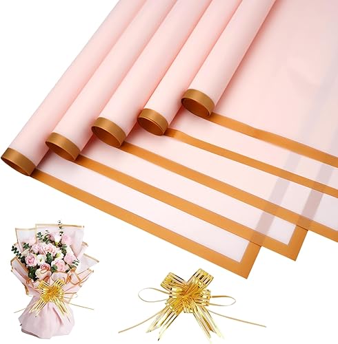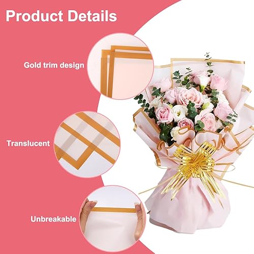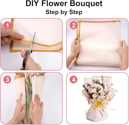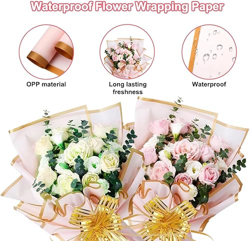 20 Feuilles de Papier Cadeau pour Bouquet de Fleurs, Flower Wrapping Paper 58x58cm, Bouquet Wrapping Paper avec Ruban, Papier Emballage Fleuriste pour l'emballage de Cadeaux, Fleurs, Artisanat