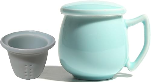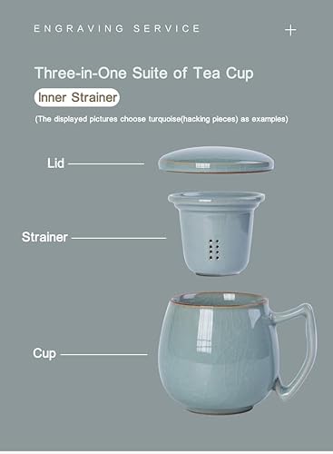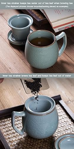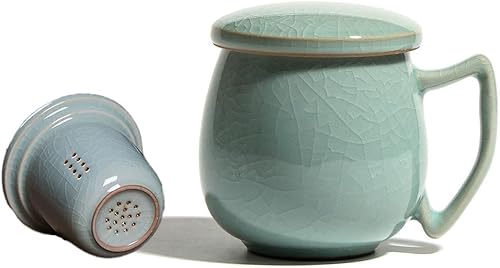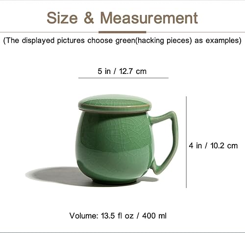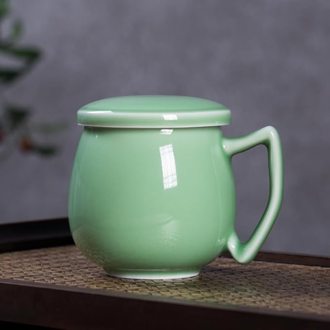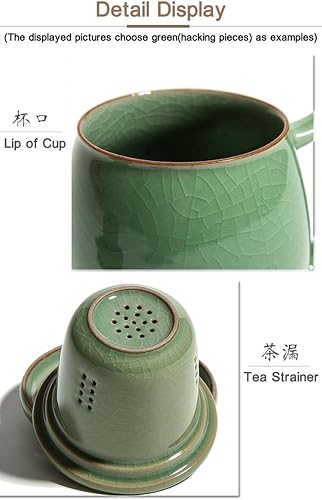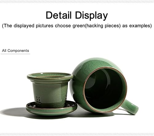 Tasse à thé en porcelaine céladon avec passoire intérieure et couvercle, jade chinoise avec 4 motifs optionnels, vert (pièces de hacking)