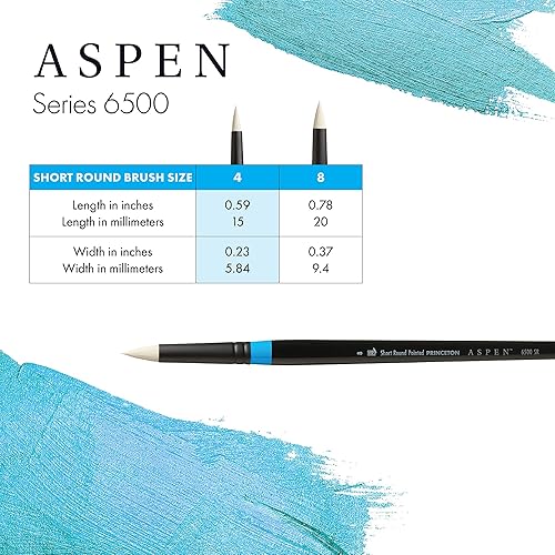 Princeton Aspen, Glare-Free Indoor/Outdoor Brush for Acrylic & Oil, Series 6500S Short Round Pointed Synthetic, Size 12 (P6500SR12)