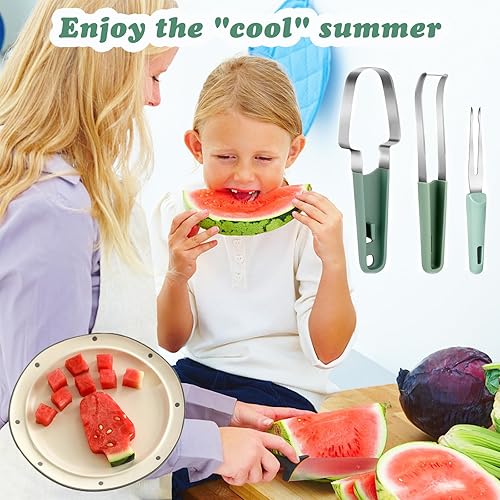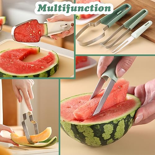 ROROJOYMA 2Pcs 2024 Nouveau Coupe Pastèque 3 en 1 en acier inoxydable/314 Coupe-Melon Multifonction/6000 Coupe-fruits - Pour pastèque, melon