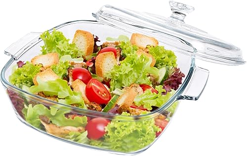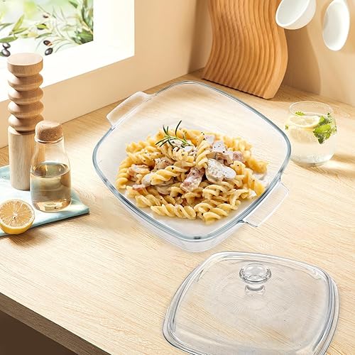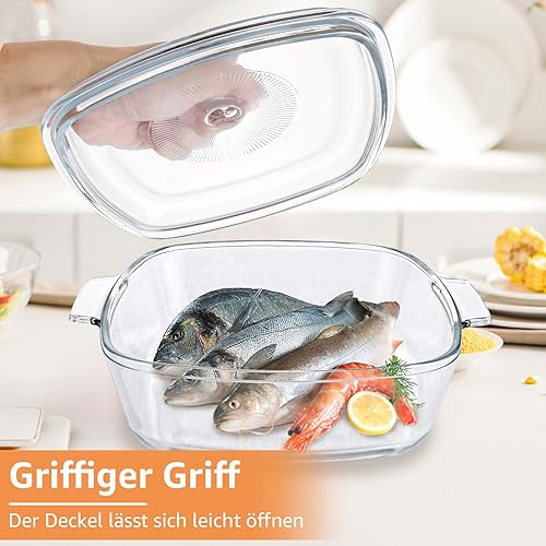Oungy Plat à gratin rectangulaire en verre avec couvercle, 1,5 l, avec couvercle et poignées, pour 2 personnes, passe au micro-ondes, au four