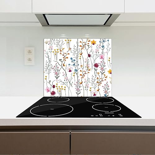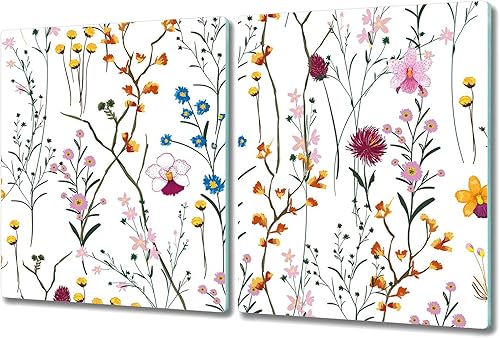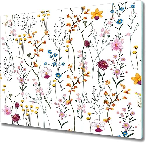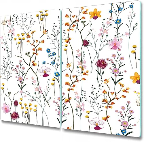 Coloray Planche À Découper 2x30x52 cm Induction Cuisson Protection Plaque Verre Trempé Tapis de Découpe Double - Couvre des fleurs sauvages jardin aquarelle lumineuse coloré