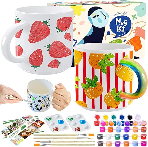 Crifeton Kit de peinture sur céramique, la fête des Mères sur tasses Contient des tasses, des pinceaux, des peintures et des instructions pour, Kit de poterie pour la maison