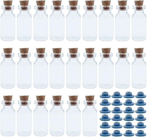 UMCHU 24 bouteilles de souhaits, mini bouteilles en verre, avec bouchon en liège et en caoutchouc, bouteilles pour cadeaux de Noël, pour bricolage, mariage, cadeaux de fête (16 * 35mm)