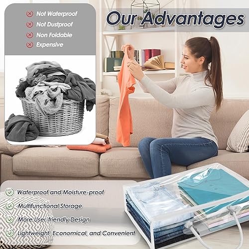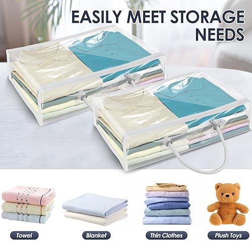 6PCS Sac de Rangement Transparent 40X 30X10cm, Boite Rangement sous Lit Pliable avec Poignées, Sac de Rangement Vetement en PVC avec Fermeture à Glissière pour Demenagement, Couvertures,Jouets
