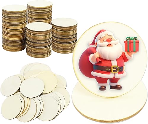 LEIBOCHAO Rondin de Bois Deco, Lot de 100 Rondelles Bois - Diamètre 35mm Épaisseur 2mm, pour Décoration de Vacances et Loisirs Créatifs, Étiquettes Cadeaux et Décorations à Suspendre