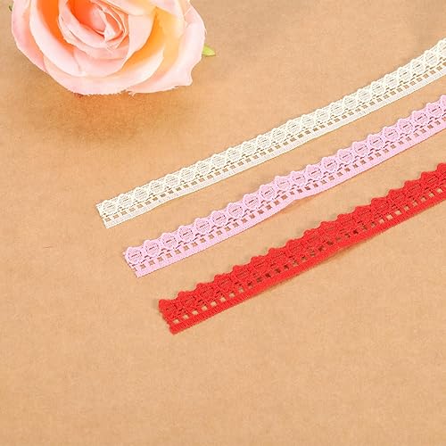 QUARKZMAN Dentelle Garniture, 10 Yards 1/2 pouce Vintage Dentelle Rubans pour Artisanat Cadeau Paquet Décoration Mariage Bandeaux éclairage Rose