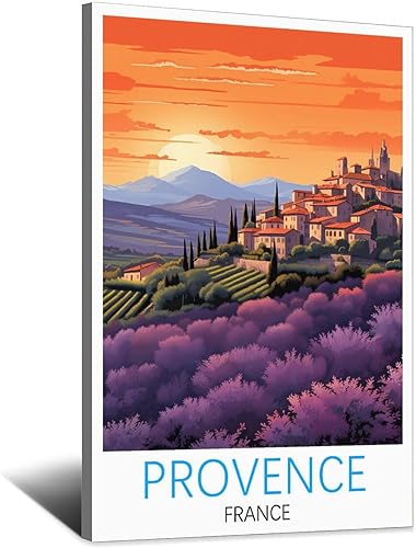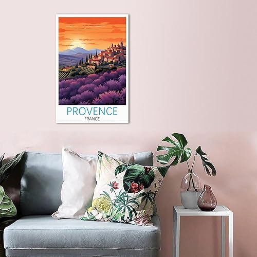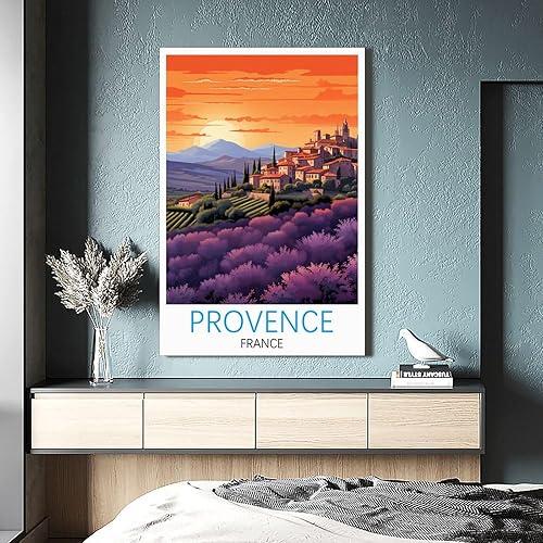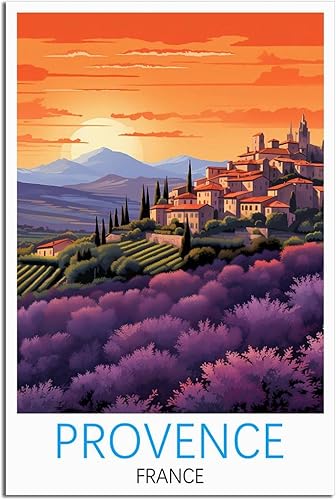 iPuzou Poster de voyage vintage Provence France - 20 x 30 cm - Décoration murale - Impression sur toile