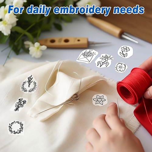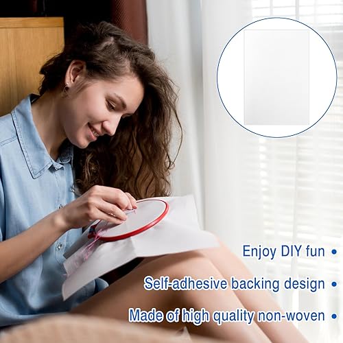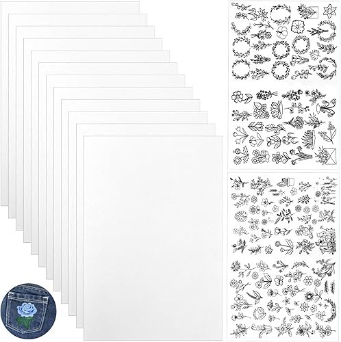 Dadabig 12 Feuilles Papier Broderie Soluble, 10 Pièces Stabilisateur de Broderie et 2 Pièces Modèles de Broderie Stabilisateur Soluble Dans l'Eau pour Les Débutants et Les Amateurs de Broderie