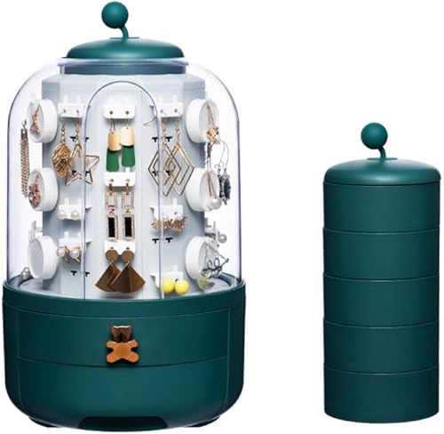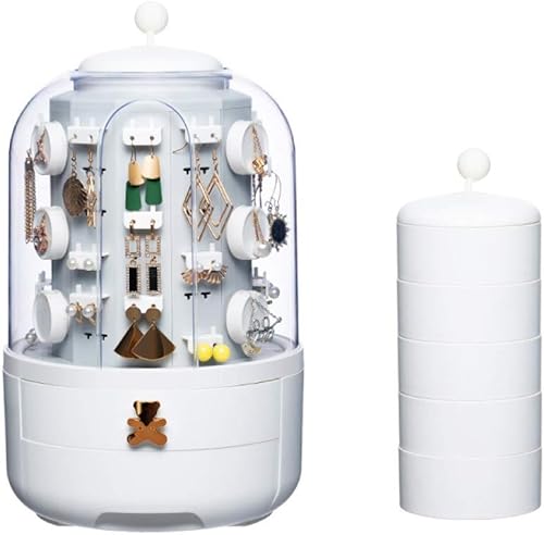 HAIBI Boîte à Bijoux, Coffret à Bijoux 360 Boîte à Bijoux Rotative Boîte De Stockage Cosmétique Transparent Organisateur De Maquillage Boucles D’Oreilles Collier De Bureau Organisateur, Blanc