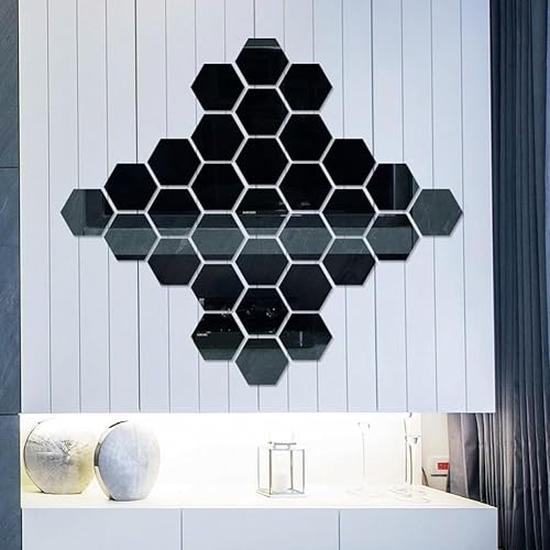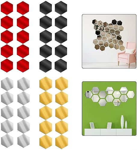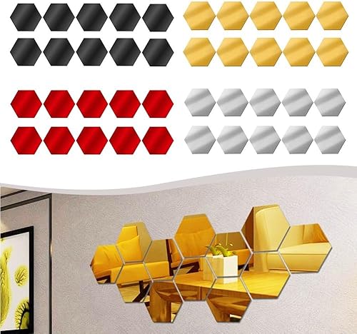 Lot de 24 autocollants muraux miroir en acrylique hexagonaux dorés pour décoration de la maison et idées d'artisanat (XS 24 pièces, rouge)