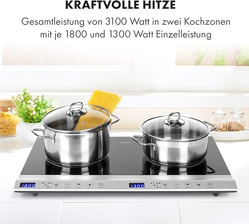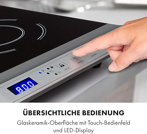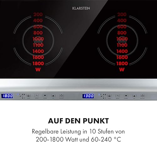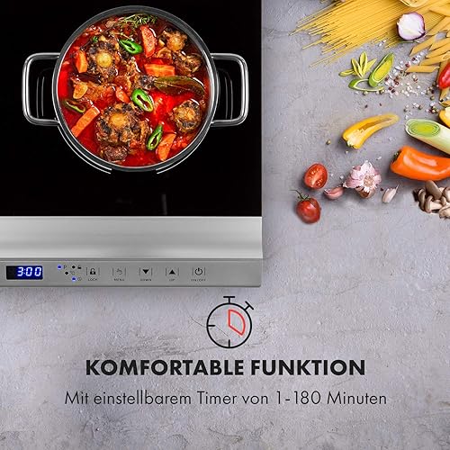 Klarstein Cucinata - Table de cuisson, 10 niveaux, 200-1300 watts, 60-240 ° C, Ecran LED, Panneau de commande tactile, Minuterie réglable de 1-180 minutes, Verrouillage parental, Noir
