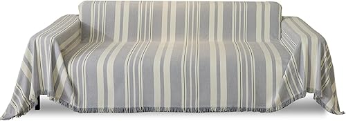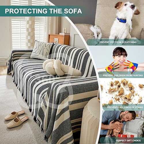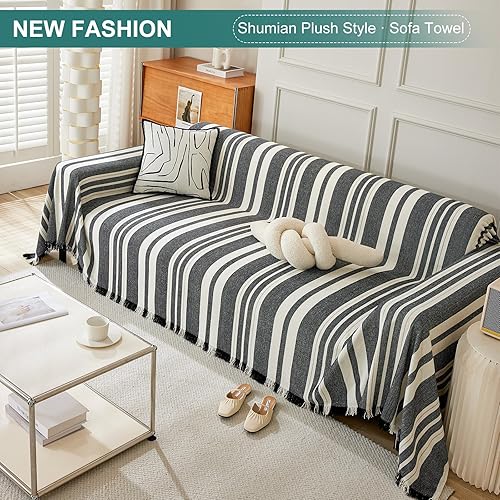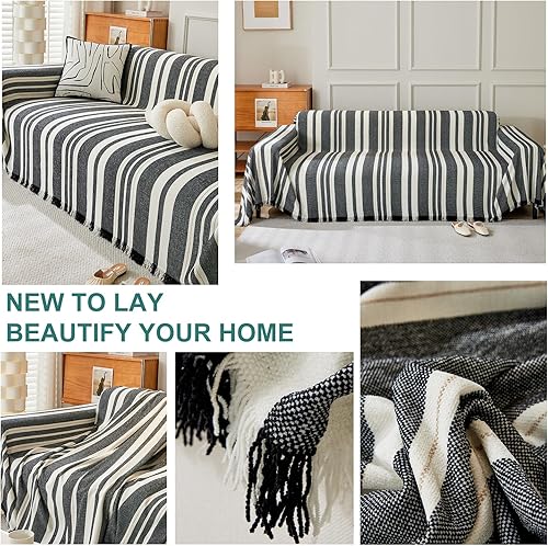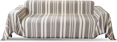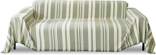 VanderHOME Multifonction Jeté de Canapé Grande Taille, Housse Canapé 2 3 Places Réversible Couvre Canapé Jete de Canape Polyvalente avec Décoratifs Glands 180 * 340cm-Kaki