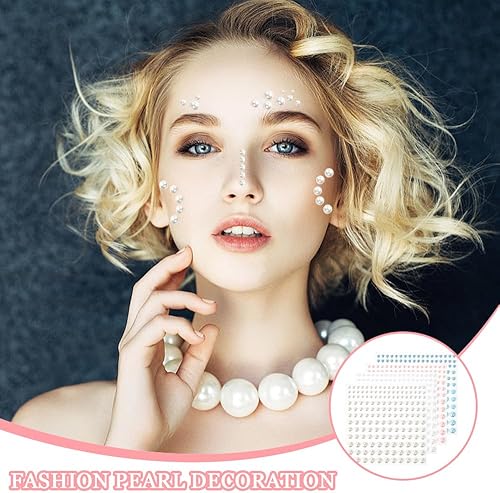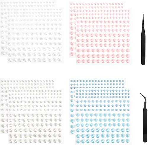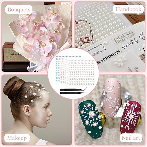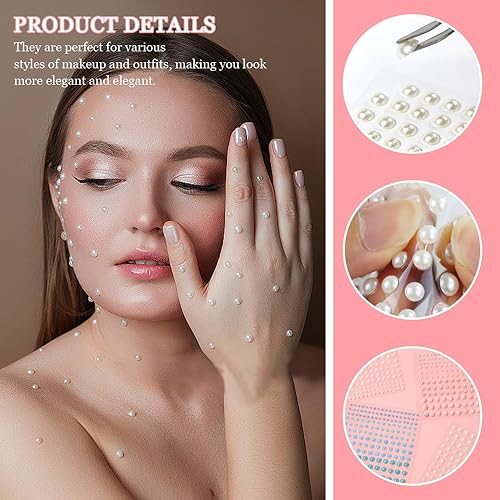 TRKETK 10 Pièces Autocollants De Perles Auto Adhésifs Perles Plates Semi-Circulaires Perles Artisanales Avec une Pince à épiler pour Le Maquillage Du Visage Nail Art Décoration DIY
