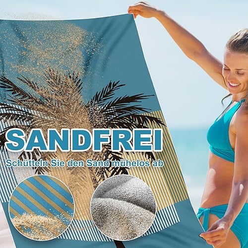 Asbtos Grande serviette de plage 180 x 100 cm - Serviette de plage double face - Séchage rapide - Douce, légère, facile d'entretien - En microfibre sans sable - Pour voyage, vacances, natation