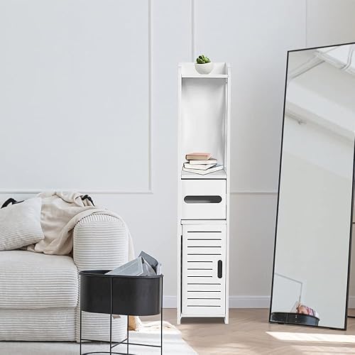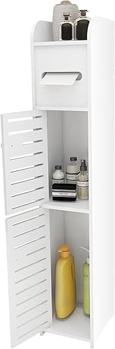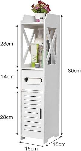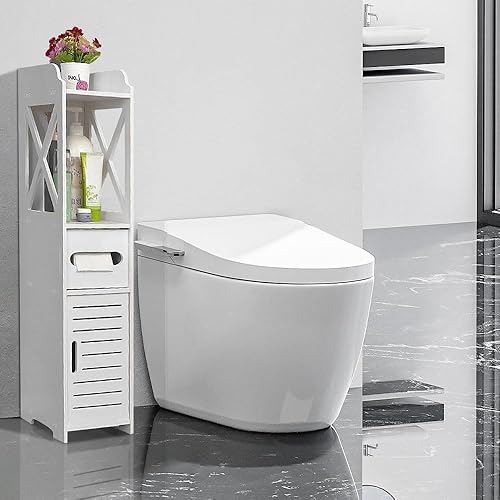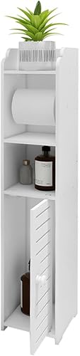 WODFARR Armoire Meubles de Salle de Bains collonne, Étagère de Rangement Blanche pour Salle de Bain, Support pour Papiers Toilettes,économie d'espace-20 * 15 * 80cm