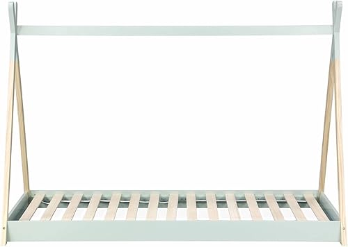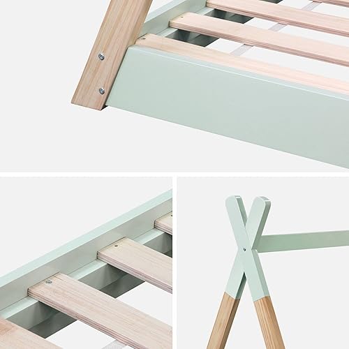 Alice's Home - Lit Tipi en Bois Massif. pin Naturel Vert céladon - sommier Inclus. 90x190cm - Tobias