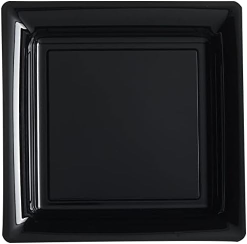 Assiette Réutilisable Noir 23X23 cm | Kit 36 Assiettes Noires Brillant | Lavable à Froid | Assiette Carrée Plate | Table Eco-Responsable | Vaisselle Incassable | Entreprises - Associations - Foires |
