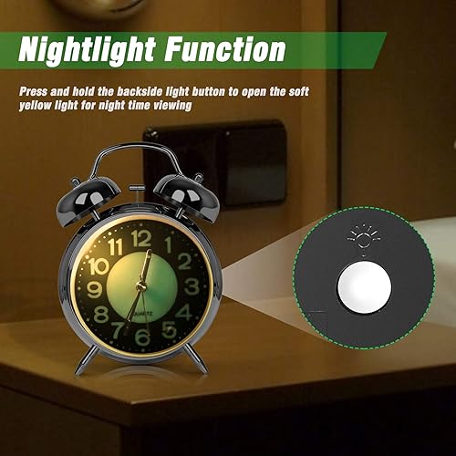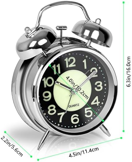 AYRELY® Réveil super puissant pour adultes qui dorment lourd, design rétro, 10,2 cm, silencieux à quartz sans tic-tac avec rétroéclairage, cadran en métal, parfait pour chambre à coucher et chevet