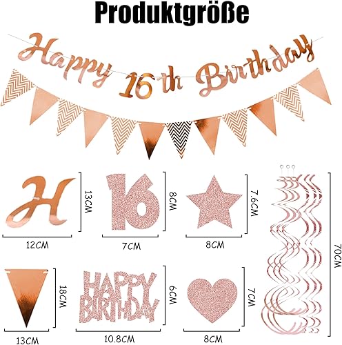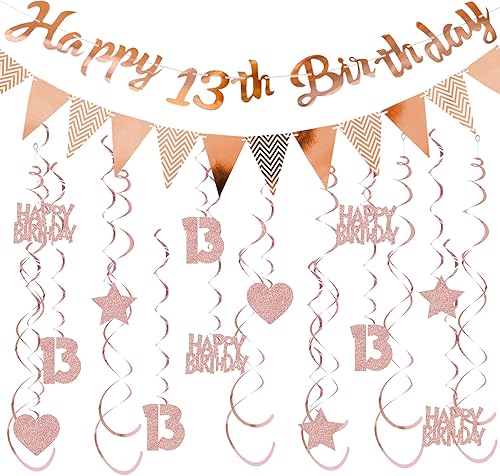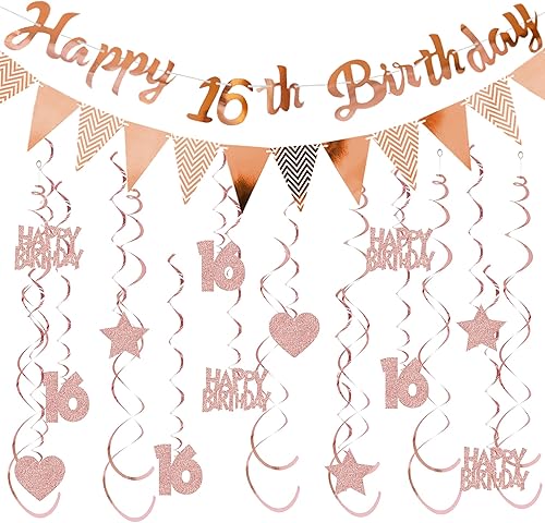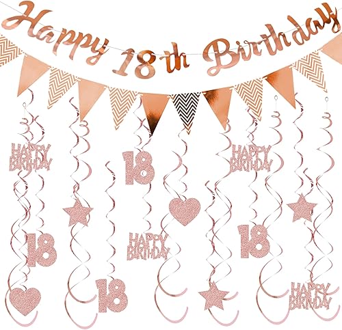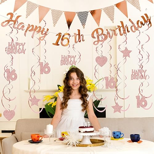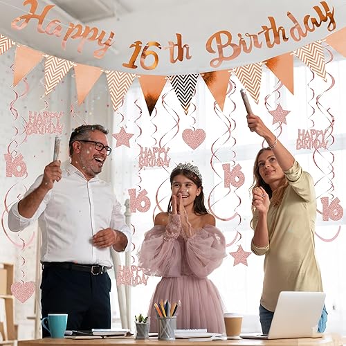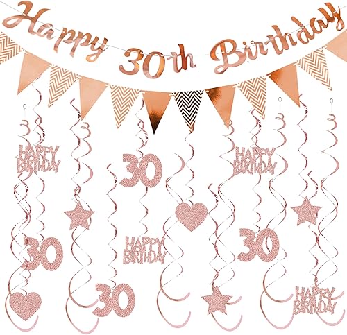 Guirlande décorative 50 ans pour femme or rose – Décoration d'anniversaire Happy Birthday Bannière fanions et tourbillons suspendus, décoration à suspendre à paillettes pour 50 ans de fête