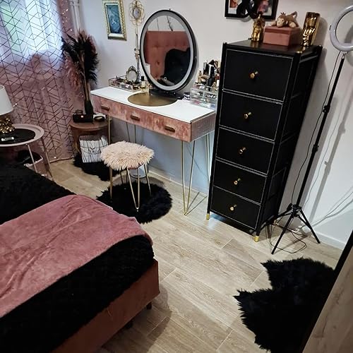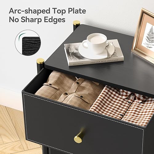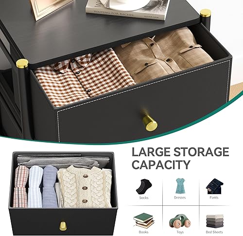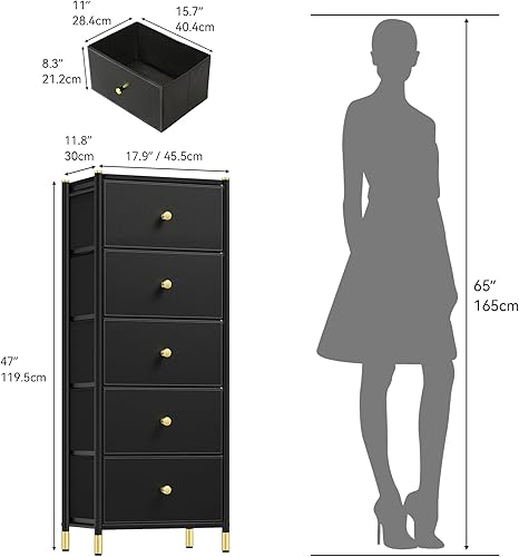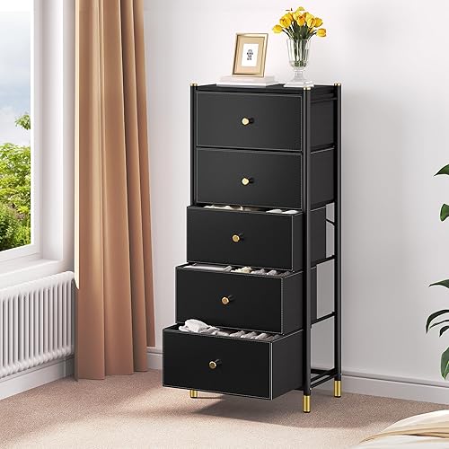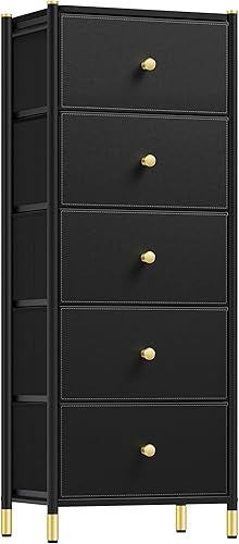 YITAHOME Commode à tiroirs en Tissu avec Dessus en Bois et Grand Espace de Rangement, Commode à 5 tiroirs, Commodes en Cuir, Chambre à Coucher, Salon, Chambre d'enfant, Couloir, etc (Noir)