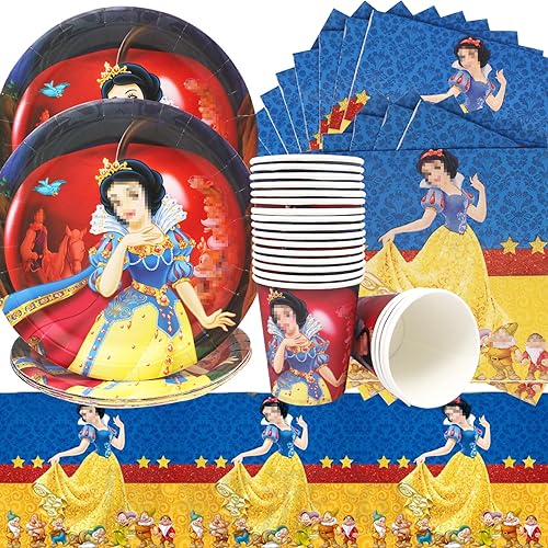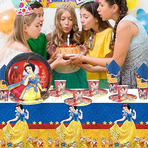 Doyomtoy Princesse Vaisselle,61Pièces Décorations Anniversaire Princesse,Vaisselle de Fête Anniversaire Princesse Ensemble Enfants Fête-Gobelets,Serviettes,Nappe,Vaisselle Pour 20 personnes