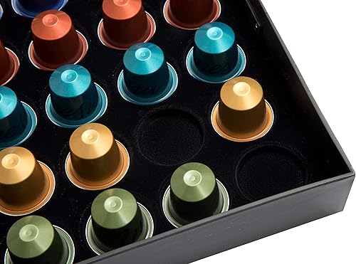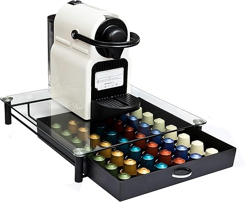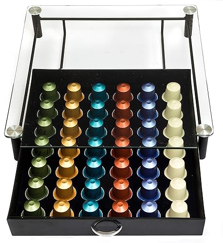 Amtido Tiroir de rangement de dosettes avec verre trempé en cristal – Peut contenir 42 capsules de café – Superbe support pour la présentation et l’organisation