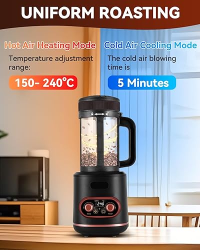 YUCHENGTECH Torréfacteur de café 100g Torréfacteur Café à Air Chaud 2000W Torréfacteur de Grain de Café Température et Durée Réglables avec Fonction de Refroidissement