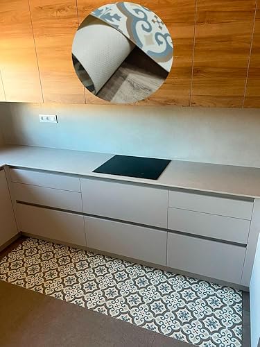 Tadi & Imperio1979 Tapis Vinyle hydraulique, différentes Tailles, élégant, Design et résistance pour Votre Espace, Cuisine, Salon, Salle à Manger, Sol en PVC (150 x 200 cm, étoile Grise)