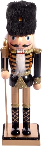 Ciao Christmas Nutcracker Toy Soldier Halberdier (24cm) Wooden Glittery Decoration with Fabric, Black/Gold