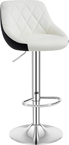 WOLTU Tabouret Bar, Chaise Haute Bar, Tabouret en Similicuir, Réglable en Hauteur, avec Dossier, Repose-Pieds, Chaise Haute Cuisine, Blanc, BH30ws-1