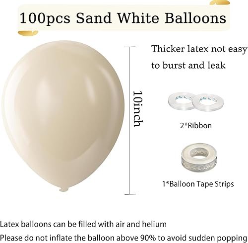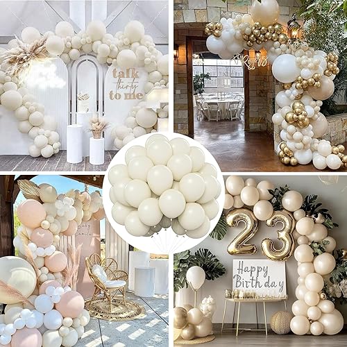 Ballons Beige, 100 Pcs 10 Pouces Anniversaire Ballon Blancs Sable en Latex,Ballons de Baudruche pour Filles Garçons, Ballon Helium pour Enfants Fête d'anniversaire Baby Shower Mariage Décorations