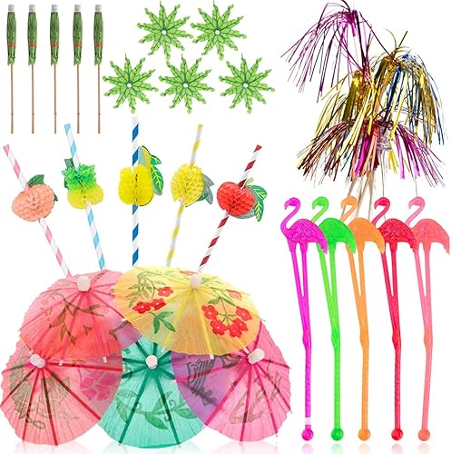 Lot de 105 décorations de cocktail - Couleurs mélangées - En papier - Pour boissons, mariage, été, fête, repas