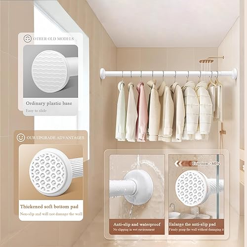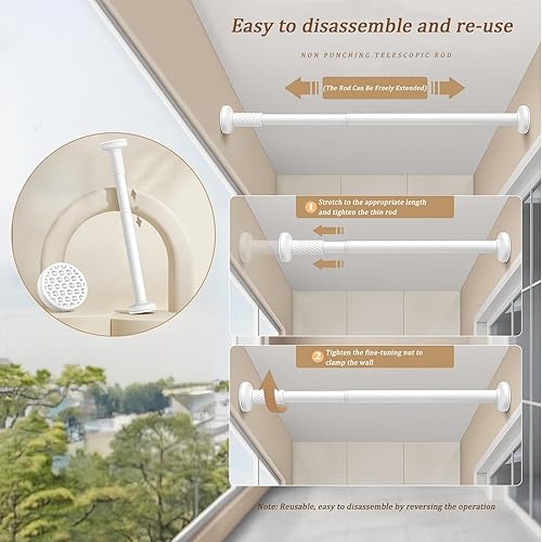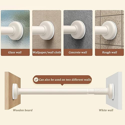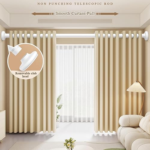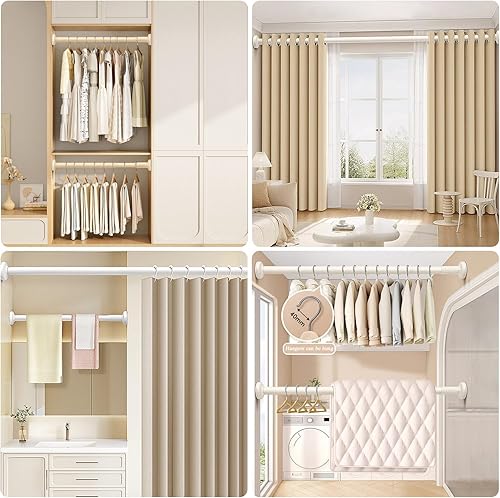 Momooda Tringle Télescopique en Acier Inoxydable sans Perçage, Tringle à rideaux Extensible Autobloquante, Tringle à rideau salle antirouille pour Bain et Chambre, Beige, 70-120cm