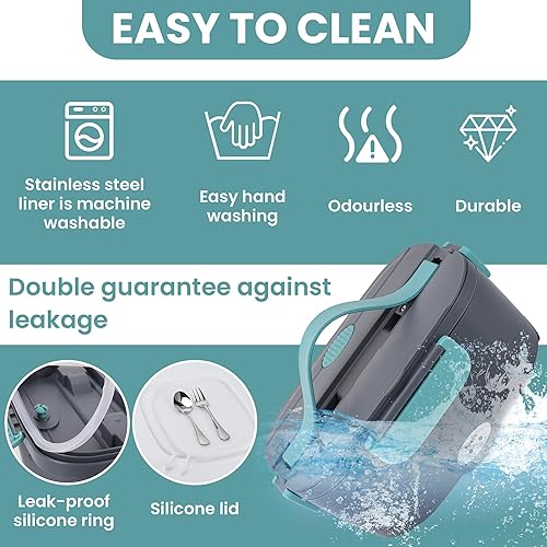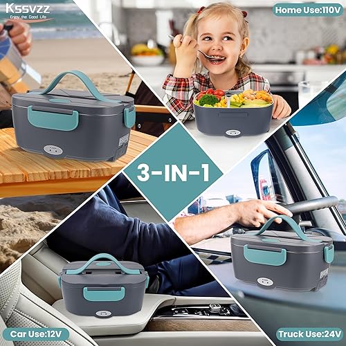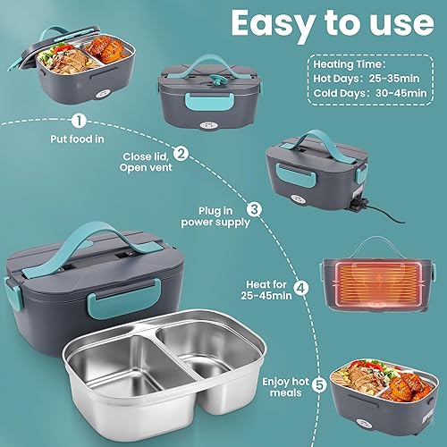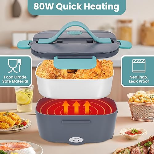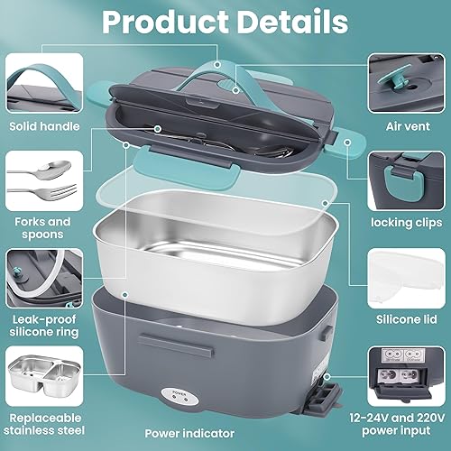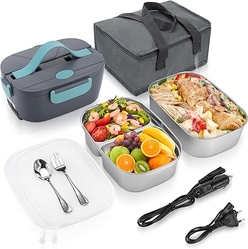 Kssvzz Gamelle Chauffante 80W avec Système Intérieur Combiné 2x1.5L, 3-en-1 12V/24V/110~240V Lunch Box Chauffante, Boite Chauffante Repas avec Gris Sacs Isolants pour Maison Voiture Camion Bureau