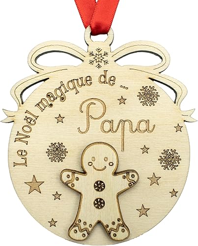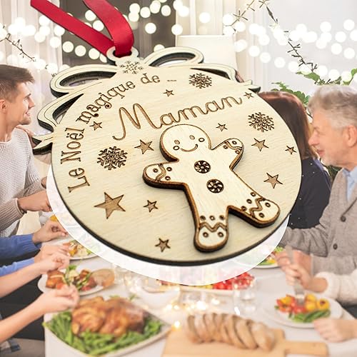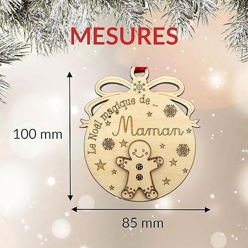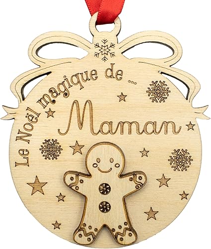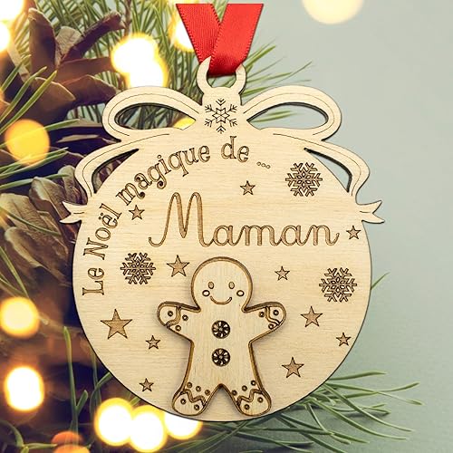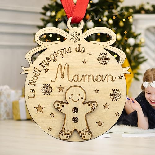 ERNESTINE - Boule de Noël personnalisée Maman - Boule Parents - décoration fête Maman en Bois - Cadeau Unique Noël, Boules Personnalisable Sapin Traditionnelle - Ornement Arbre gravé Famille Maman