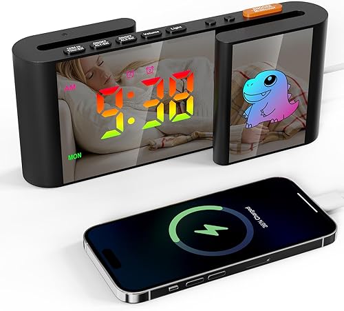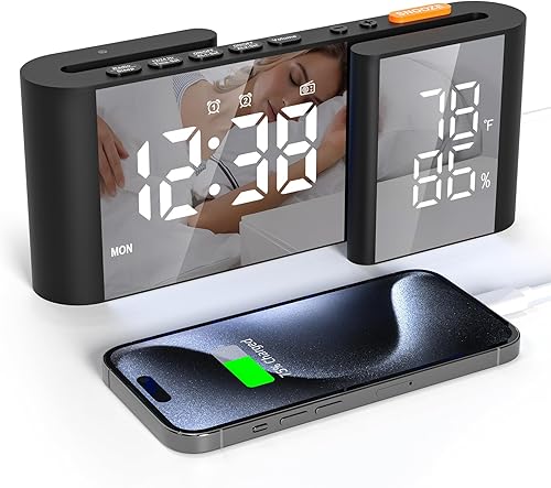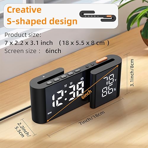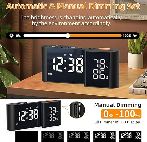 kaacly Radio Réveil avec Double Écran LED, Réveil Numérique de Chevet avec Température et Humidité Réglables, Reveil Matin avec 2 Alarmes, Snooze,Luminosité Réglable,12/24h,Horloge Digitale Port USB