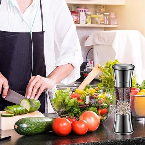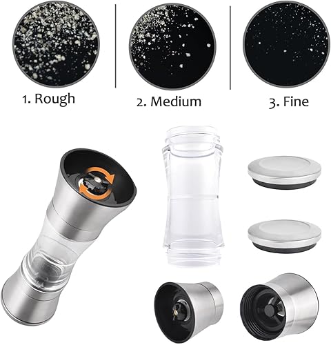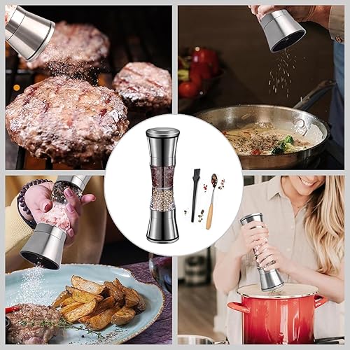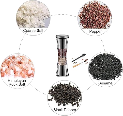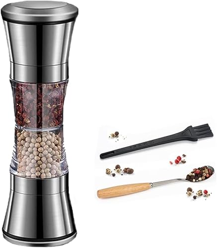 Youery 2 en 1 Moulin a Poivre, Moulin Sel Poivre, Moulin à Poivre Manuel à Double TêTe en Acier Inoxydable, Entonnoir Moulin à éPices, Moulin à Sel, TQ232